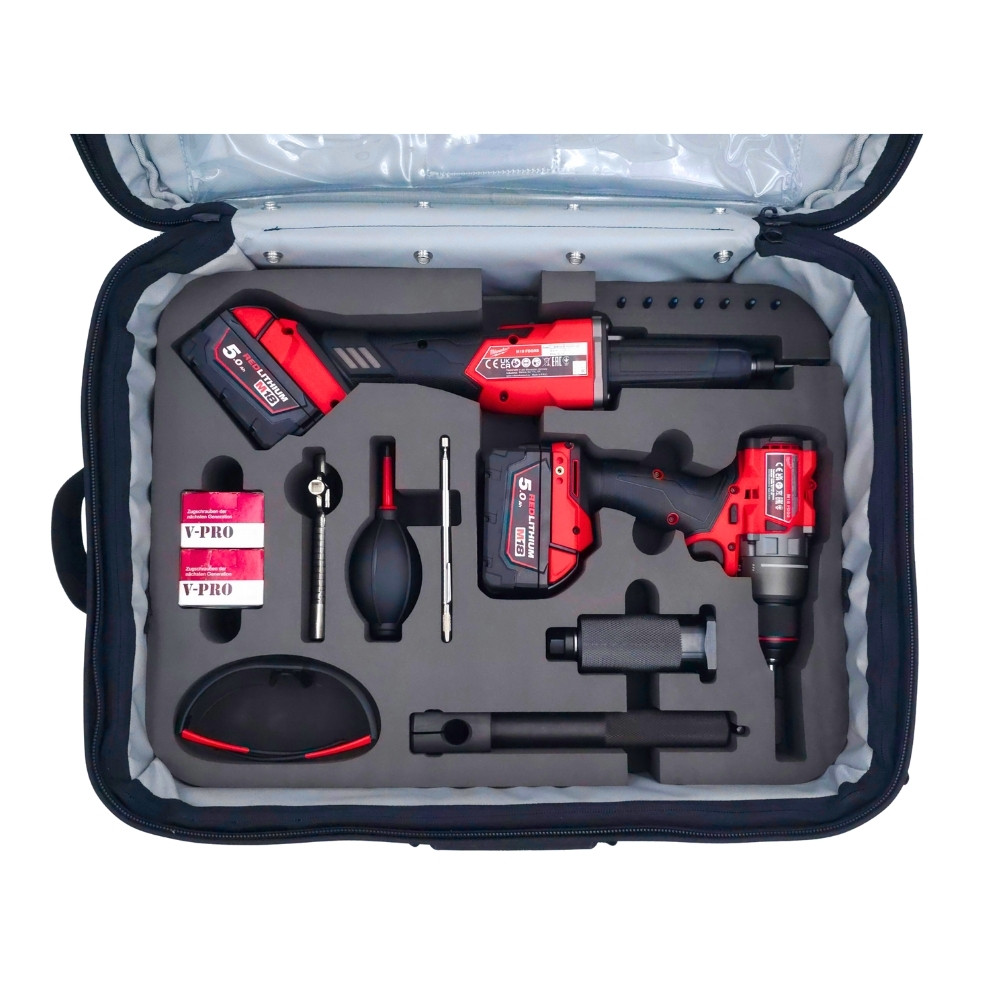 The case includes the proven pulling bell set with core pulling plates and a Cracker for Euro Profile Cylinders – ideal for pulling or breaking out the cylinder (core) on locked doors.