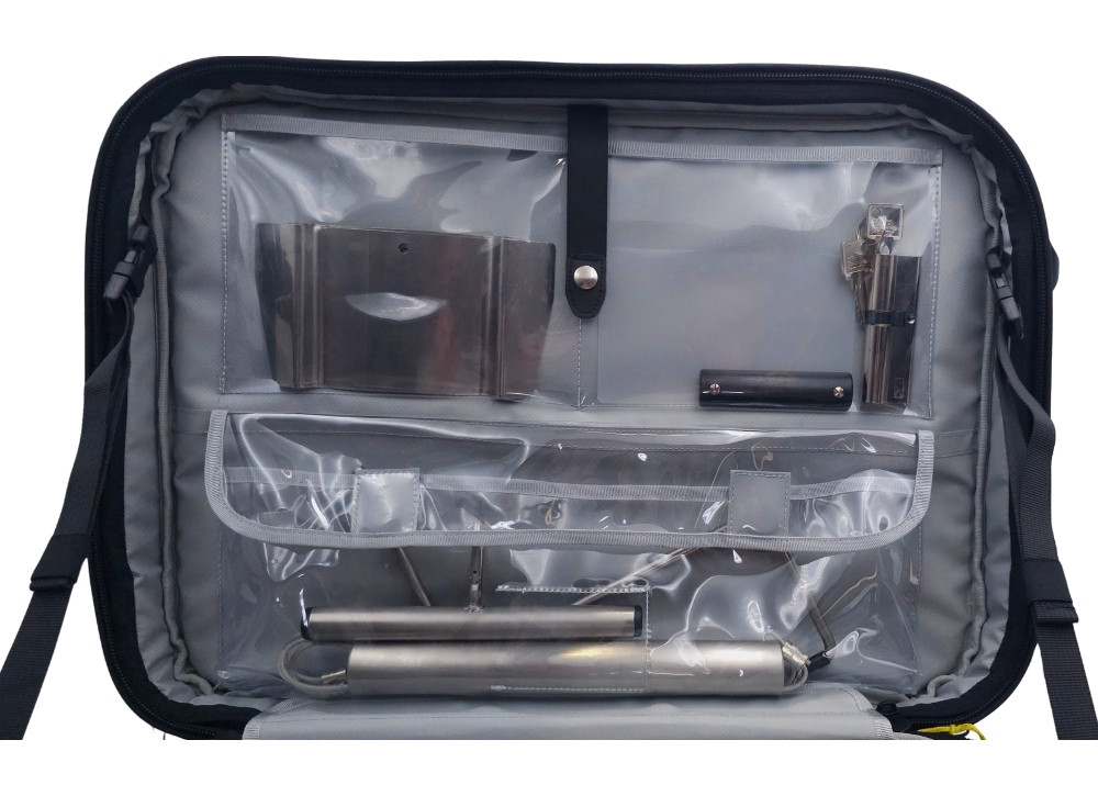 The “Door & Window Entry Backpack – V1” is a well-equipped all-in-one set designed for professional forced entry and tactical operations. It focuses on destructive door opening (core pulling, drilling, and breaking) and efficient access through tilted or closed and locked windows – including handles with locking buttons or U-shapes. The kit also includes the most essential tools for mechanical latch opening on closed rebated doors (single/double rebate) and outward-opening emergency exits. The includet warded lock pick set allows access to locked interior room doors. Numerous hand tools for removing fittings, cylinders, and lock cases complete this highly versatile setup.